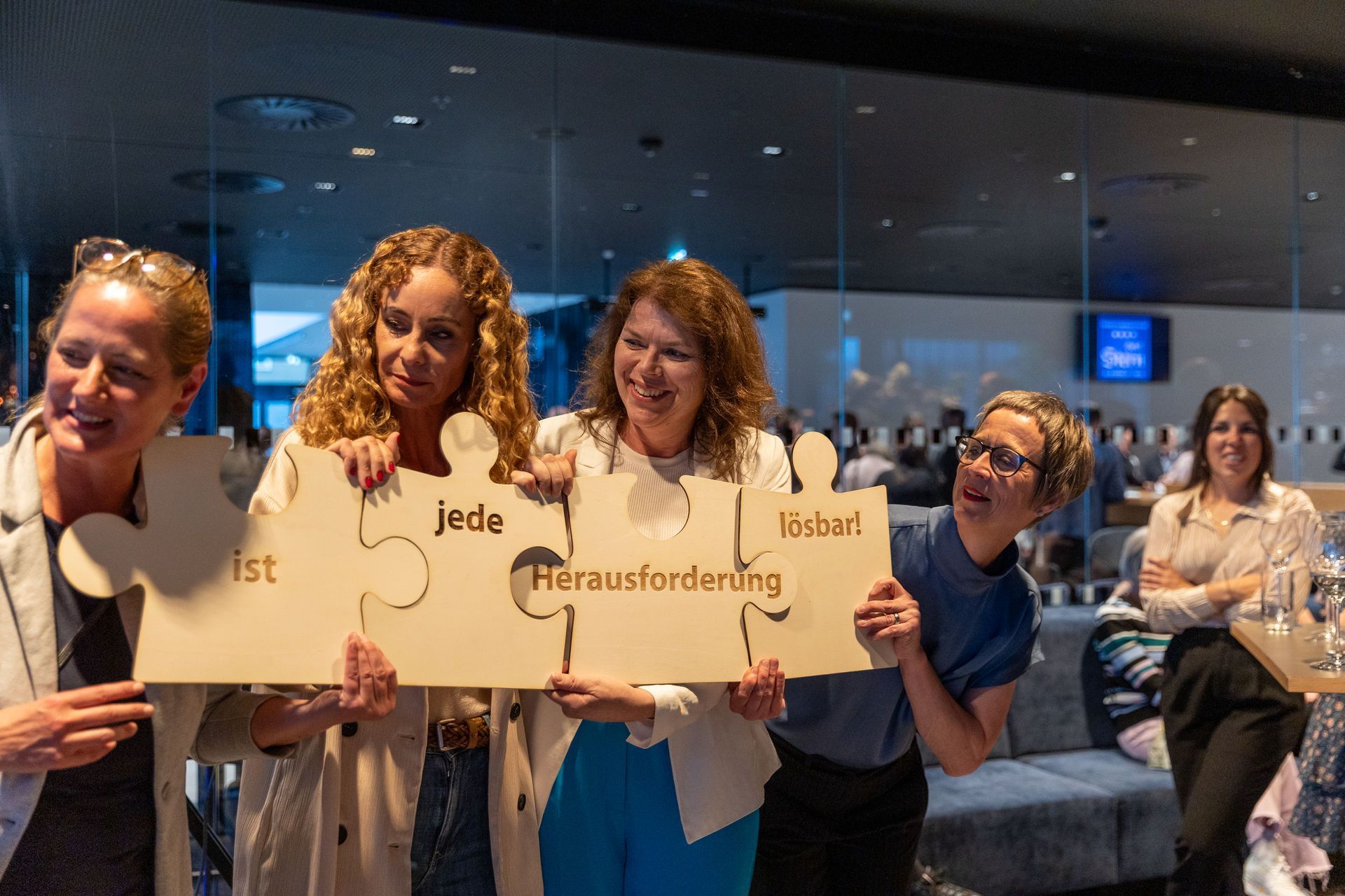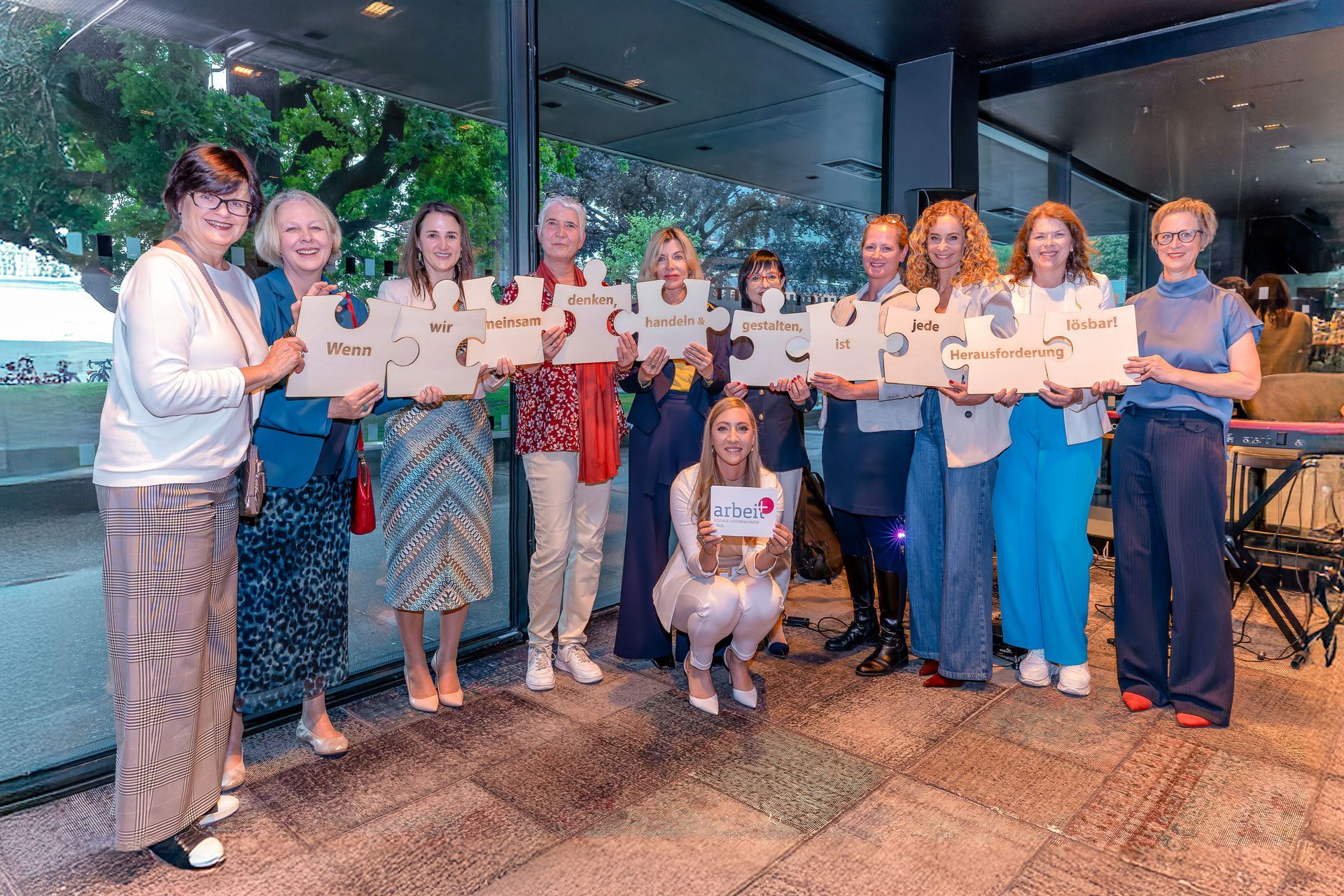 Um dieser Grundhaltung Ausdruck zu verleihen, waren Ehrengäste, die dieses gemeinsame Denken und Handeln aktiv mittragen, eingeladen, gemeinsam ein Puzzle zusammenzusetzen. Allen Rednerinnenbeiträgen gemein war, dass sie die Verantwortung gegenüber jenen Menschen, die Soziale Unternehmen durch Beratung, Qualifizierung und Beschäftigung beim Wiedereinstieg in den Arbeitsmarkt unterstützen, in den Vordergrund stellten. So betonte etwa AMS Vorstandsvorsitzende Petra Draxl die Notwendigkeit, ältere Langzeitarbeitslose zu unterstützen und Gesundheits- gemeinsam mit Arbeitsmarktpolitik zu denken. Dafür bedarf es einer Verknüpfung von Bundesebene und regionaler Praxis. Sabine Platzer-Werlberger, Landesgeschäftsführerin des AMS Tirol, bedankte sich für den in Tirol so erfolgreich umgesetzten partnerschaftlichen Dialog.