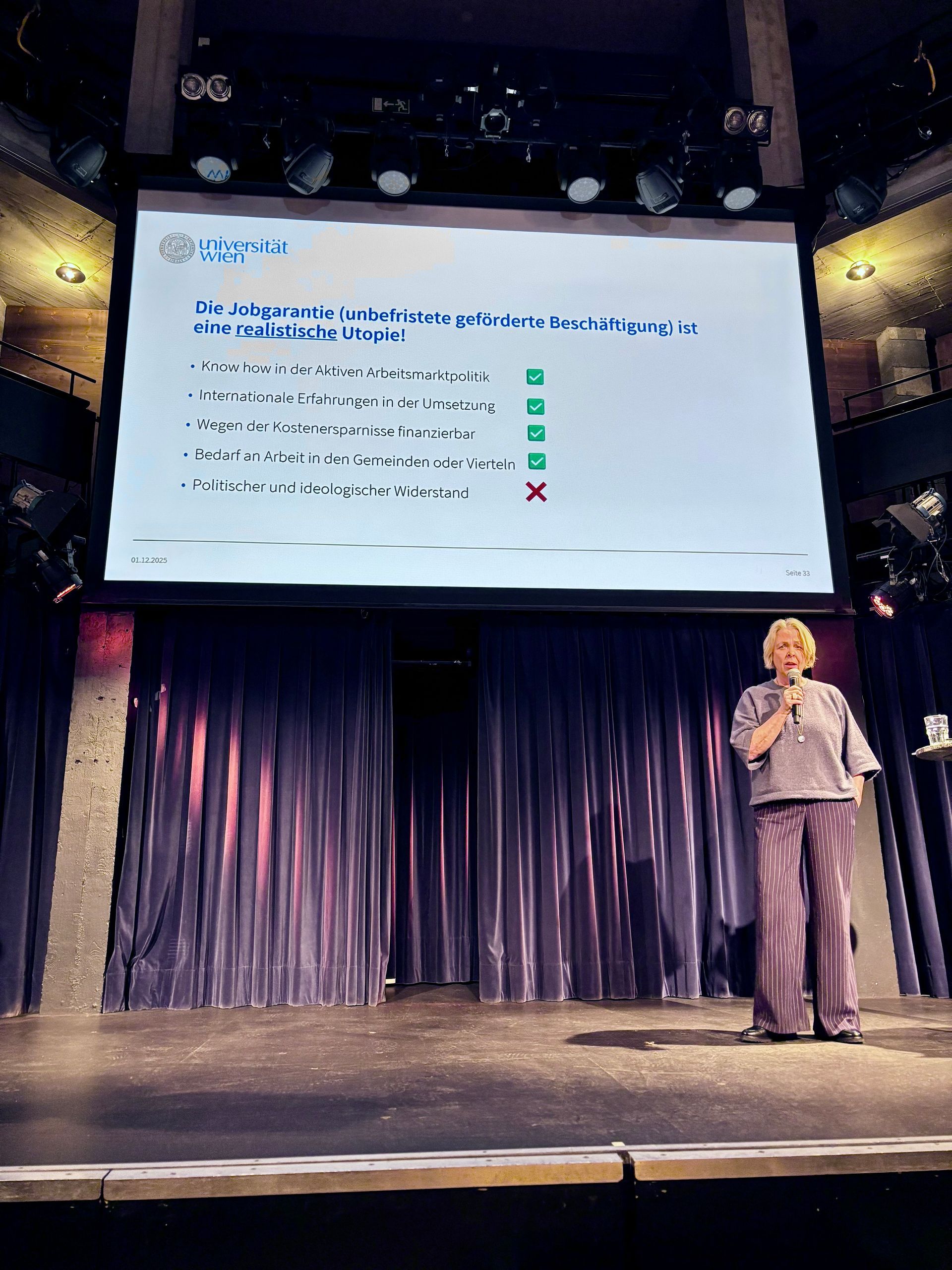 Am 22. November 2025 lud der Verein Demokratie – Kultur – Dialog in Kooperation mit dem AMS-Tirol, dem Renner-Institut Tirol und dem ÖGB Tirol im Rahmen der Reihe „Nur Utopien sind realistisch. Die Zukunft moderner Gesellschaften“ zum spannenden Austausch rund um das Konzept der Jobgarantie ins Innsbrucker Treibhaus.